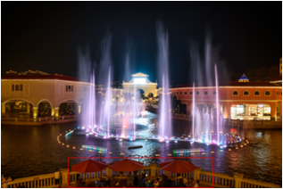 活动内容:于音乐喷泉前区设置舞台,喷泉开启时配合剪影舞蹈,结合中西方不同风格,配合音乐喷泉进行舞蹈。